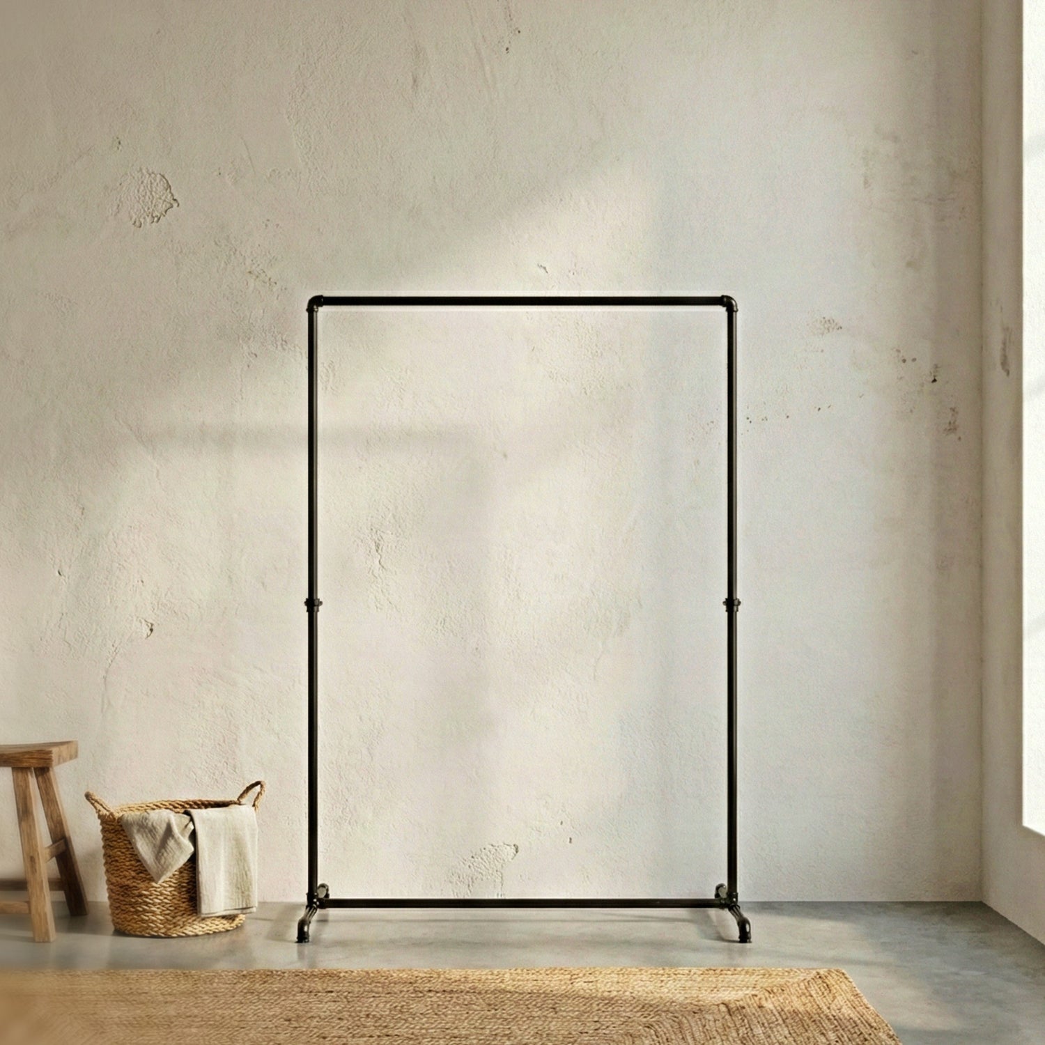 Geef uw interieur extra karakter met ons kledingrek in mat zwarte uitvoering. Dit model uit onze "Raccord Peint Déco"-lijn combineert de rauwe esthetiek van buizen met een verfijnde afwerking, ideaal voor een slaapkamer, hal of elegante garderobe.