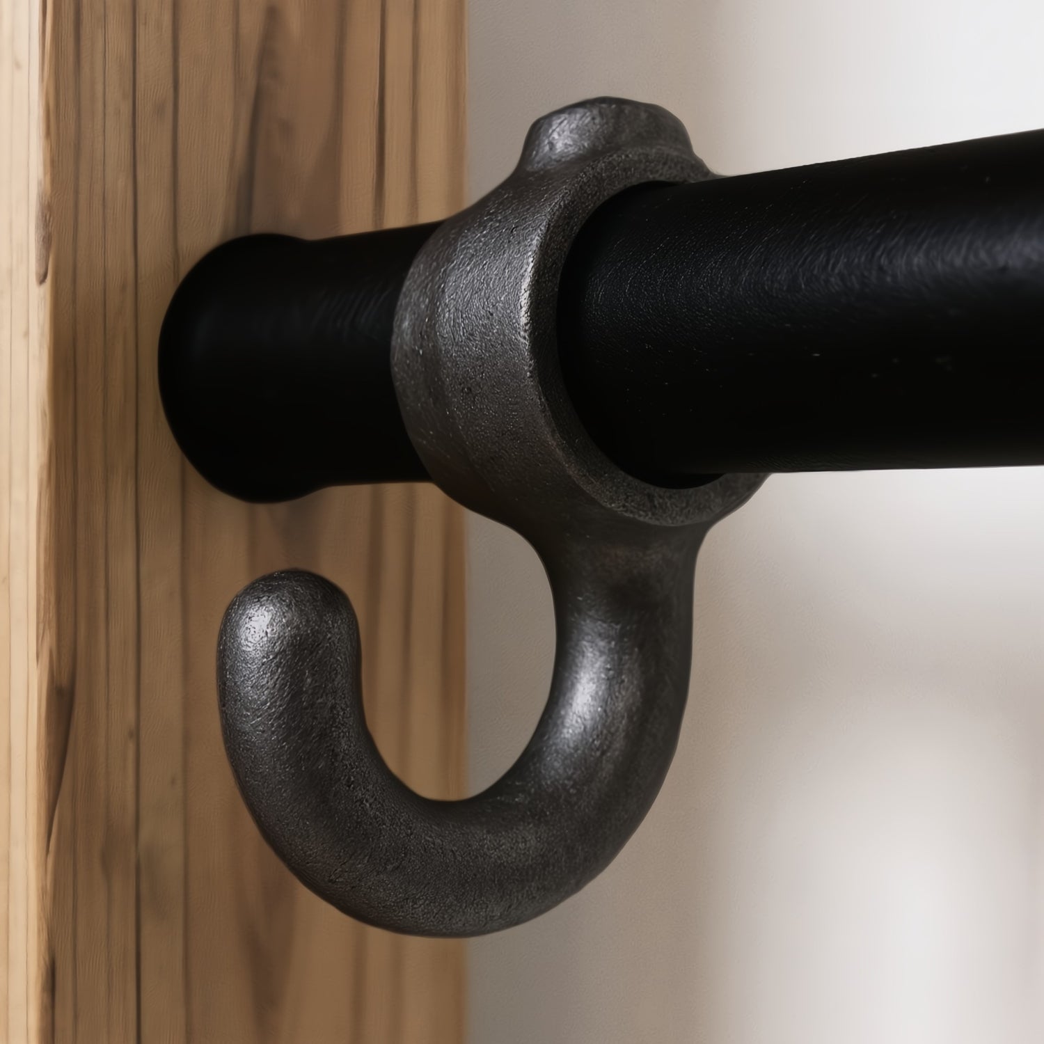 Deze haak van ruw gietijzer combineert stevigheid met een authentieke industriële uitstraling. Ontworpen om rechtstreeks op een schroefdraadbuis te worden bevestigd, maakt hij het mogelijk decoratieve elementen op te hangen met een natuurlijke, ruwe look. De bevestiging met inbusschroef zorgt voor een stevige en onopvallende grip – ideaal voor maatwerkprojecten en interieurs in werkplaatsstijl.