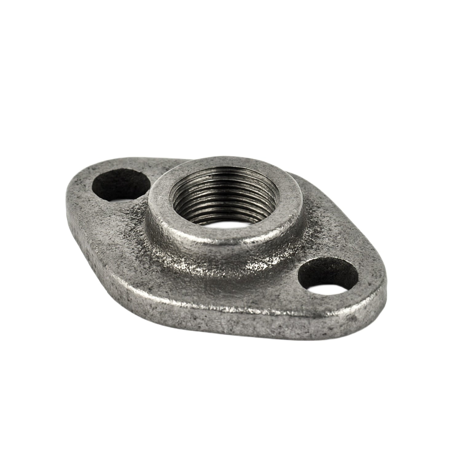 Zwarte gietijzeren ovale plaat voor het bevestigen van buizen of fittingen met schroefdraad. Deze bevestigingsflens is ideaal om je structuur aan een scheidingswand, plafond of gewoon op de vloer te bevestigen. De ovale vorm beperkt het oppervlak dat nodig is voor bevestiging. Bevestiging is eenvoudig met slechts 2 gaten (grote gatdiameter: 12mm).